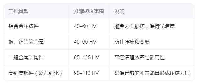 中等硬度(65–125 HV)則在清理效率與表面保護之間取得平衡,是多數工業應用的選擇。